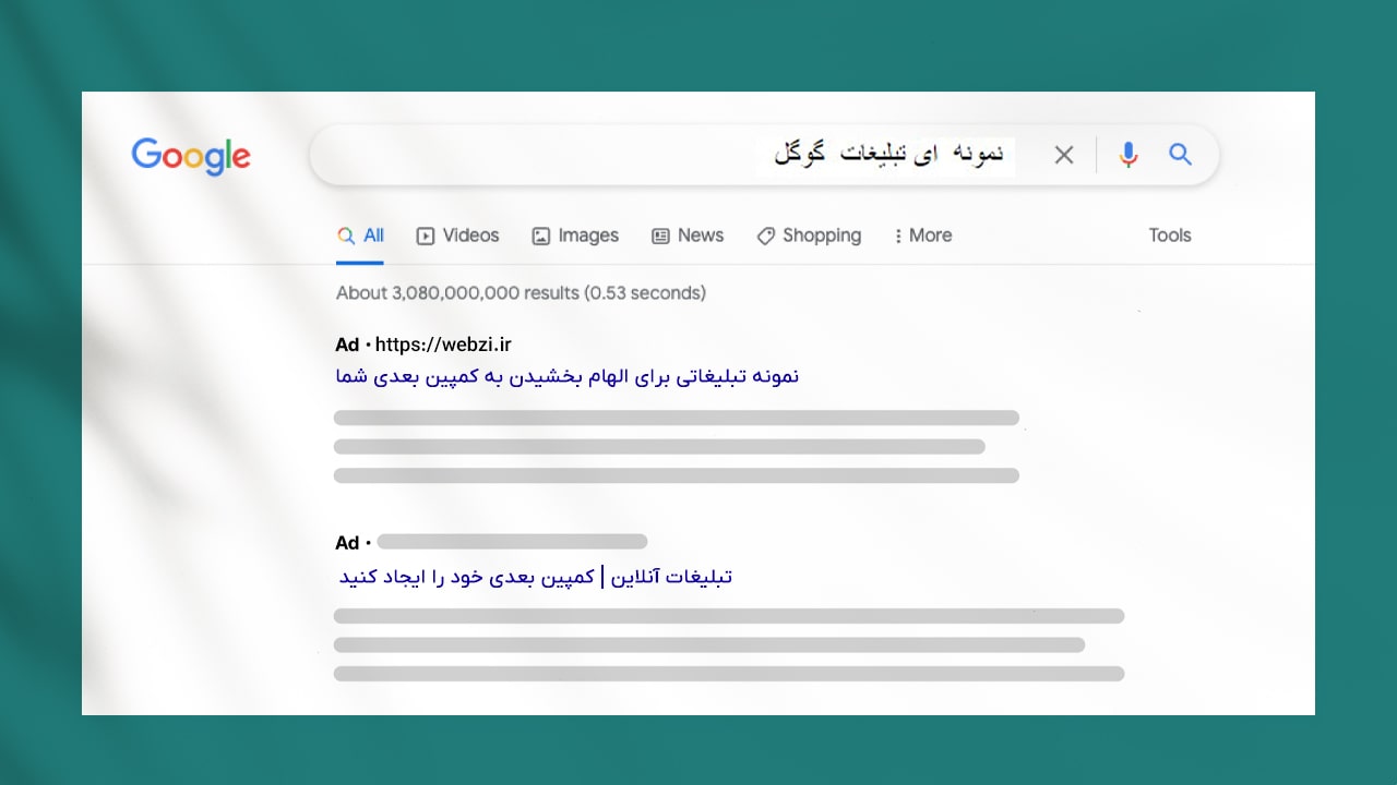 شبکۀ جستوجوی گوگل هم همان شبکهای است که هر روز در آن سرچ میکنیم. تبلیغات در این شبکه با علامت AD یا Sponsored نمایش داده میشوند.