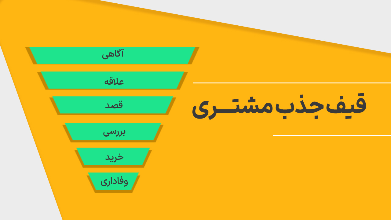 شما چه یک عمدهفروش باشید چه یک خردهفروش، به استراتژی جذب مشتری نیاز دارید. جذب مشتری طی مراحل مختلفی انجام میشود که به آن «قیف جذب مشتری» میگویند. تصویر این قیف را در زیر میبینید:
