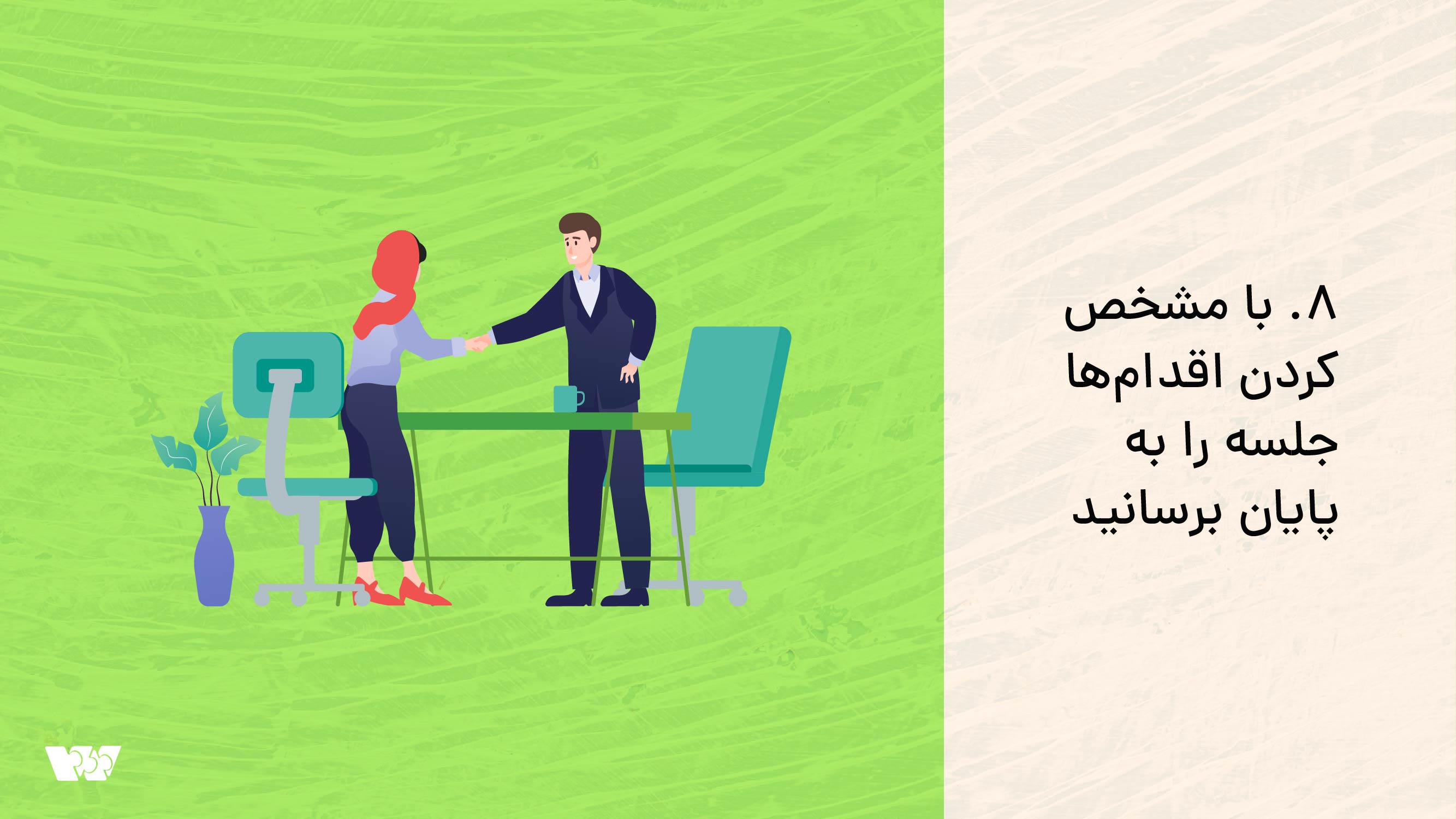 8. با مشخص کردن اقدامها جلسه را به پایان برسانید