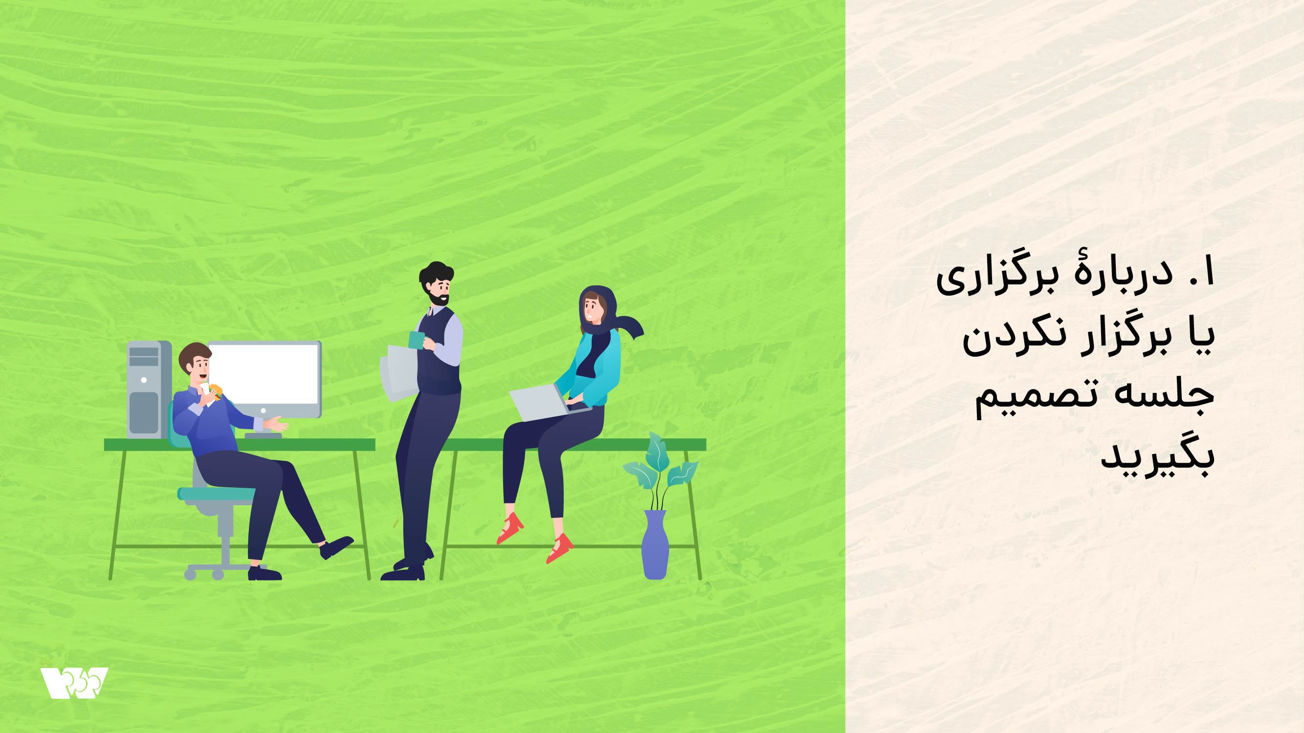 1. دربارۀ برگزاری یا برگزار نکردن جلسه تصمیم بگیرید