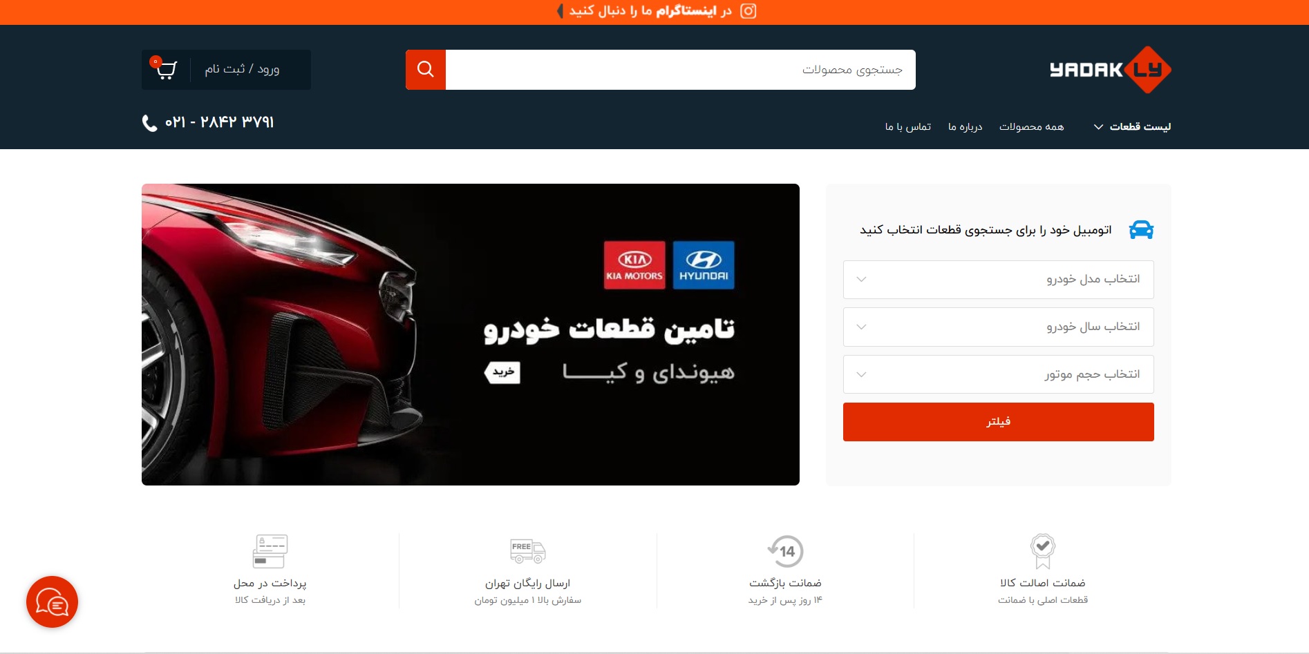 در این ساختار، لینکسازی و ناوبری قدرتمند به تجربه بهتر کاربر از حضور در وبسایت شما کمک میکند. در زیر، تصویری از وبسایت یدکلی را میبینید که برای طراحی آن از ساختار ماتریسی استفاده شده است.