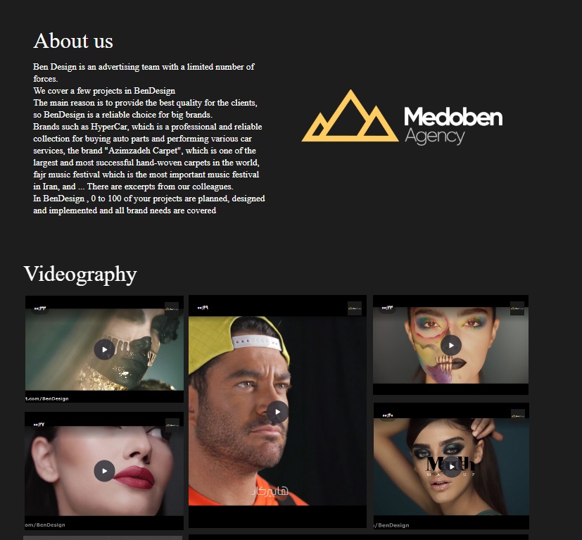 در زیر، تصویر وبسایت medobenagency را میبینید که بهصورت خطی طراحی شده است. در ابتدا شما اطلاعاتی کلی درباره این وبسایت به دست میآورید و در ادامه هم با دستهبندیهای مختلف آن آشنا میشوید که خدمات برند را معرفی میکند. این وب سایت با استفاده از سایت ساز وبزی طراحی شده است.